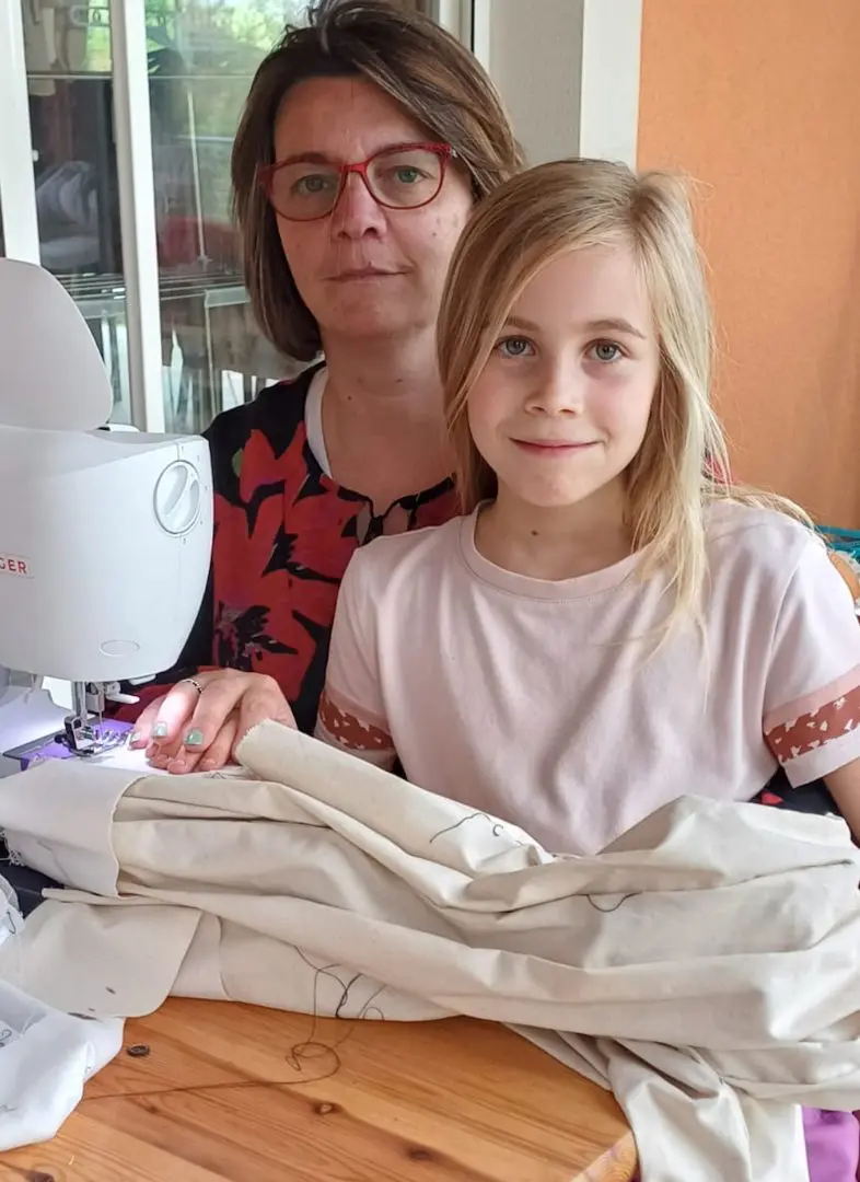 Quelque temps plus tard, j’ai été contrainte de cesser mon activité auprès des enfants handicapés, en raison d’une inaptitude médicale. J’ai alors trouvé un nouvel équilibre de vie, qui m’a permis de me consacrer à l’éducation de mes trois enfants. Et c’est grâce à l’un d’eux que mon aventure dans la couture a commencé lors d’un carnaval : mon fils voulait à tout prix se transformer en crocodile ! Alors, armée de carton, de tissu, de fil, d’un zeste de créativité, et de beaucoup d’amour maternel, j’ai relevé le défi. Après des heures de travail acharné et quelques coups de ciseaux maladroits, le résultat était là : un costume de crocodile unique en son genre. Et cela a payé : mon petit bonhomme a remporté le concours du meilleur déguisement !